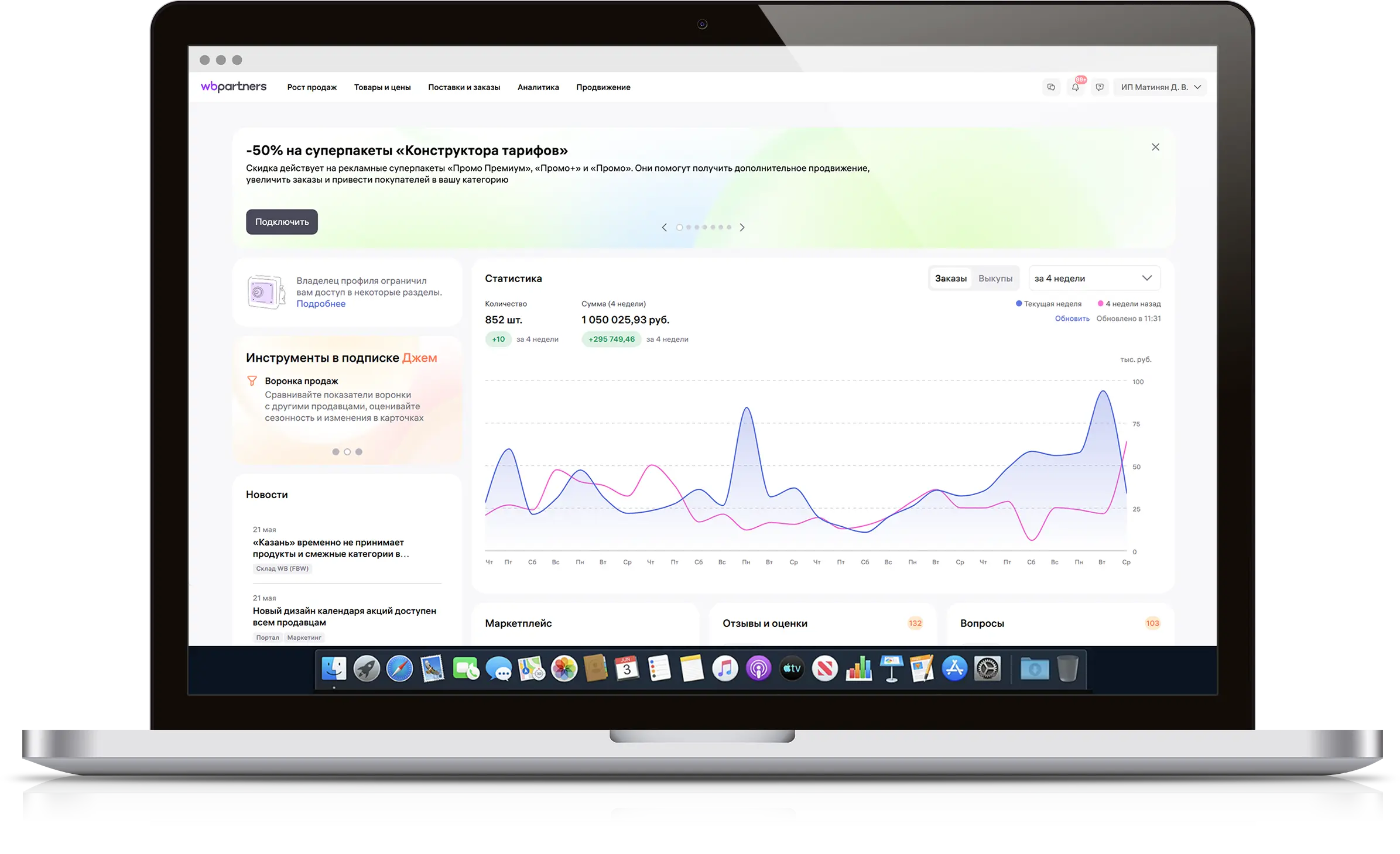 Оптимизировали карточки, проводили анализ конкурентов, планировали поставки, многократно тестировали гипотезы в работе с карточками и рекламе, построили грамотную систему формирования цен на товары.